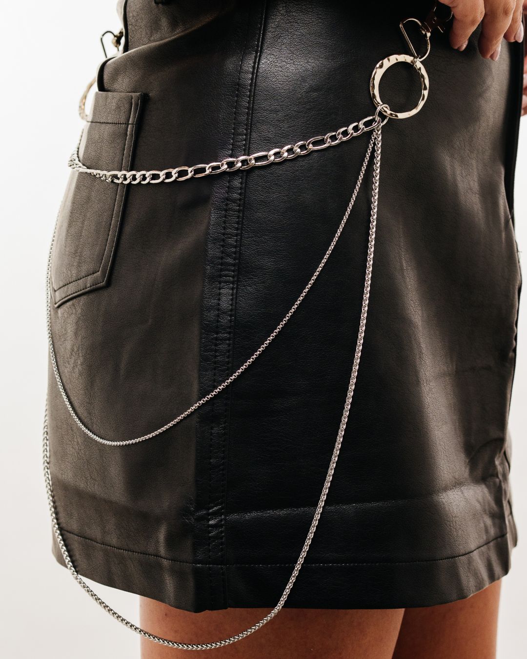Accesorio para prendas inferiores. Tres tipos de cadenas de acero quirúrgico inoxidable. Ideal para looks urbanos. Diseño unisex.